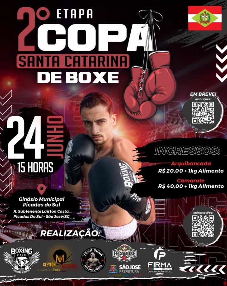 A Segunda Etapa da Copa Santa Catarina de Boxe será em São José - SC no dia 24 de junho.