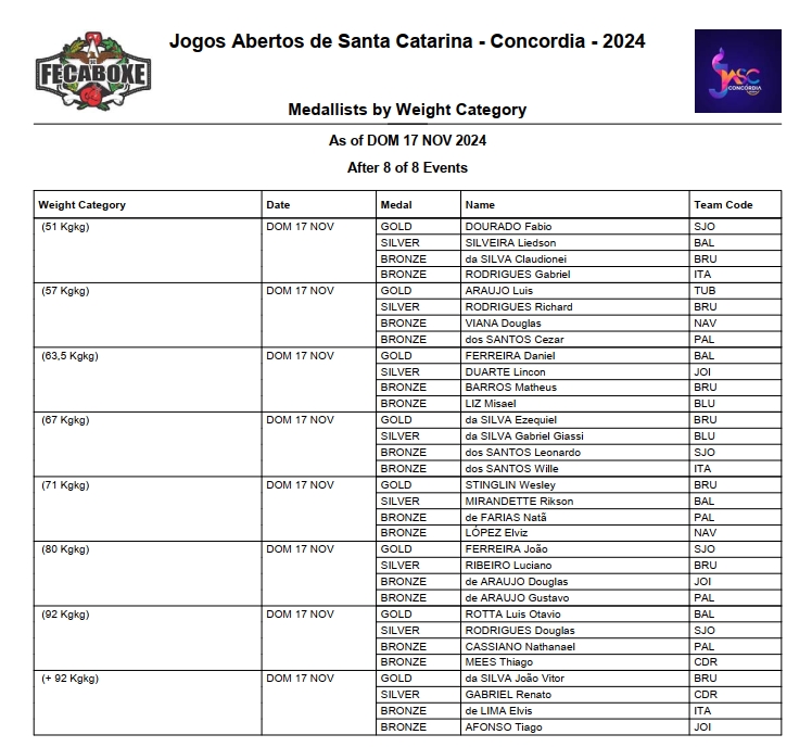 Confira a lista dos medalhistas por categoria do Boxe no JASC 2024