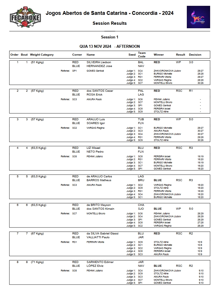 Confira os resultados do JASC - Modalidade Boxe do dia 13/11: